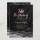 Rosa de ouro preto agate 50º convite de aniversário. Elegante design moderno com aquarela agate marble geode background, faux glitter rosa gold e typografia script font. Trendy convida o cartão perfeito para uma comemoração de dia das mulheres na moda. Impressos convites Zazzle ou modelo de impressão digital instantânea para download.