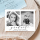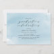 Nossa festa de formatura de fotos "Agora e Depois" na na moda convida a exibir sua foto favorita do mais velho (agora), assim como uma foto de bebê ou criança (então). Alterar os anos abaixo de cada foto para refletir o ano de graduação e o ano de nascimento (ou a foto do ano foi tirada). Os convites de festa de formatura modernos exibem "formando" em uma fonte elegante com o nome do formando, o nome da escola e o ano de classe abaixo. O lado inverso dos convites de festa de formatura de tendências apresenta os detalhes de seu partido sobre um fundo de cor azul-céu.