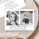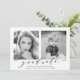 Nossa festa de formatura de fotos "Agora e Depois" na na moda convida a exibir sua foto favorita do mais velho (agora), assim como uma foto de bebê ou criança (então). Alterar os anos abaixo de cada foto para refletir o ano de graduação e o ano de nascimento (ou a foto do ano foi tirada). Os convites de festa de formatura modernos exibem "formando" em uma fonte elegante com o nome do formando, o nome da escola e o ano de classe abaixo. O reverso dos convites de festa de formatura de tendências apresenta os detalhes de sua festa em letras negras elegantes.