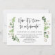 Convite de casamento moderno com fonte preta e tema de folhagem verde de jardim de verão (Agora é hora de celebrar). É perfeito para o seu casamento íntimo / festa de celebração pós-casamento. Adicione seus detalhes na fonte preta correspondente.