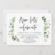 Cartão de convite de casamento íntimo com tema de folhas verdes de verão, com escrita preta moderna (agora vamos celebrar). É perfeito para o seu jantar de recepção de casamento íntimo / festa de celebração pós-casamento. Adicione seus detalhes em fonte / letra preta correspondente.