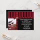 Elegante convite de festa e evento de apreciação de cliente corporativo preto e vermelho com vinho tinto e fita. Este lindo convite de apreciação de cliente corporativo é facilmente personalizado para o seu evento, bastando escolher o botão "Personalize!" para começar a adicionar os detalhes do seu evento, estilo de fonte, tamanho e cor da fonte e texto. Por favor, note que todos os desenhos de cartões e convites que você encontrará no Zazzle são gráficos impressos sem joias, laços, relevos, rebaixamentos ou peças ou partes adicionadas.