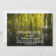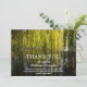 Cartão de agradecimento de memorial e simpatia, apresentando uma elegante árvore Salgueiro Chorão sobre a água, tem uma sobreposição preta com texto branco. Personalizado com o nome da pessoa e uma mensagem de agradecimento.