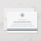 Um cartão clássico e elegante a ser usado para reconhecimento de simpatia em estilo náutico. Estes cartões de agradecimento apresentam uma bússola azul no topo, fonte serif e uma borda rica de marinho azul na parte inferior. Personalize seu texto com uma grande seleção de fontes, motivos e cor de tinta.