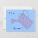 A pintura em branco de uma rega azul pode para um chá de fraldas é impressa em convites personalizados. Personalize facilmente o texto nos formulários modelo.