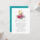 Convite de chá de casal cor-de-rosa e azul-turquesa com buquês florais em aquarela para festa de noivado/festa de casal/encontro de ensaio de casamento.