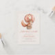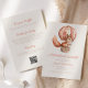 Este chá de fraldas bonito apresenta um esquilo doce de aquarela em um balão de ar quente listrado, acima das palavras "Aventura aguarda!" em escrito vermelho de tijolo. Personalize o texto com o nome da futura mãe no script e os detalhes na fonte sans serif em um fundo bege. O verso oferece espaço para fralda, livros para bebê e detalhes do registro, juntamente com um conveniente código QR que os convidados podem digitalizar para visitar o registro. Ideal para um chá de fraldas neutro em termos de gênero.