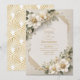 Convites Aguarela 3D flores brancas ouro Chá de Noiva