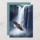 Uma majestosa águia-baleeira americana gosta do spray de uma cascata de cascata enquanto ele faz o seu gesso em busca de um Salmão. Este cartão de convite é ideal para agentes Viagem, Eco-Tours, Turismo, Resorts, Campground e Adventure Tour, para citar alguns.