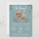 Com o texto Oh Boy!, este design de aquarela bonitinho apresenta o filhote mais bonito de labradoodle sentado num ninho de verde, flores silvestres e folhagem. Personalize com seus requisitos especiais de dia, local, oferta e RSVP e torne seu Chá de fraldas o dia perfeito para receber um menino no mundo.
