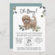 Com o texto Oh Boy!, este design de aquarela bonitinho apresenta o filhote mais bonito de labradoodle sentado num ninho de verde, flores silvestres e folhagem. Personalize com seus requisitos especiais de dia, local, oferta e RSVP e torne seu Chá de fraldas o dia perfeito para receber um menino no mundo.