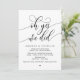 Anuncie elegantemente o seu felizes para sempre com o nosso convite de casamento tema preto e branco moderno "sim, nós fizemos". Criado para casais que continuam a sua história de amor, este convite atinge um equilíbrio perfeito de sofisticação e charme, preparando o cenário para um evento inesquecível. Com um design de letra contemporâneo moderno, adiciona um toque de graça atemporal ao seu dia especial. Desenhado pela talentosa TeeshaDerrick, este convite é uma expressão elegante do seu amor duradouro.