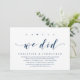 Tema moderno em azul marinho, cartão de convite de casamento fugitivo (Ah Sim, Nós Fizemos). É perfeito para a sua celebração casual de casamento às margens de um lago.