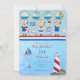 Ahoy Ali primeiro aniversario de Cotação Náutica Marinheiros Vermelhos Azuis Brancos Lighthouse Convite