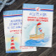 Tema náutico, convite azul brilhante e chá de fraldas vermelho. Arte baleeira branca na frente e arte aquática de farol na parte inversa em azul alegre e brilhante, vermelho e branco. Personalize com os detalhes do seu próprio partido. Cores d'água originais e pinturas brancas e design por Sarah Trett para www.mylittleeden.com apenas no Zazzle.