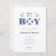 Marinha d'água azul e náutica branca, tema do chá de bebê, design de convite para receber um menino.