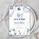 Ahoy! é um chá de fraldas de menino, tema chá de fraldas náutico, tema chá de fraldas de Fisher, comemorar o próximo chá de fraldas com nosso marinho azul-rústico veleiro náutico, âncora, roda, barco, anel de borracha de salva-vidas, caranguejo em cor bege, ao contrário do padrão de faixas azuis marinho. Você pode personalizar seu próprio texto e cor através de "personalizar este design".