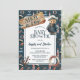 Marque um delicioso chá de fraldas náutico com nossa coleção de modelos "Ahoy, It's A Boy" do Teddy Bear e acessórios. Este charmoso design apresenta um Urso de Teddy vestido com o uniforme de um capitão, parado na praia arenosa com um cartaz de madeira "Ahoy It's A Boy!" acima, um conservador de vida e âncora de um navio. Um padrão repetido de itens náuticos e criaturas marinhas em um fundo azul escuro ao seu redor.