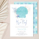 Ahoy, é um menino! é o convite perfeito para o chá de fraldas do seu chá de fraldas temático oceânico. A bela casca de aquarela, coral e estrela-do-mar em tons azuis de aquarela para um chá de fraldas de menino.