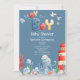 O admirável fundo azul-oceânico colorido com elementos náuticos de polvo, âncoras, baleias, ondas, estrelas-do-mar e outros itens doces do mar ajudam a dar vida a esta doce design para o perfeito chá do bebê. 100% de "satisfação do cliente com o "Zazzle" todos os dias.