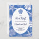 Ahoy, é um menino! Celebre o seu pequeno no caminho com este belo convite de chá de fraldas inspirado no oceano. Apresentando delicados conchas de aquarela, corais e estrelas-do-mar em tons azuis serenos, esta design traz um sonhador toque costeiro para a sua celebração. Perfeito para uma praia ou chá de fraldas de temas náuticos, esse convite abre a cena para um encontro mágico cheio de charme à beira-mar.