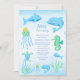 A design mostra um convite para chás de fraldas de menino com elementos submarinos como cavalo marinho, tartaruga, água-viva, etc e um texto "ahoy, é um menino" no topo. O design é extremamente bonito e único. Será um assunto extremamente importante para o seu chá de fraldas.