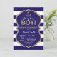 Ahoy, é um rapaz! Convite para Chás de fraldas náuticos. Marinho azul e Dourado brilho. Marinho Lança fundo.