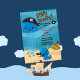 Embarque em uma aventura no mar profundo com o Ahoy Matey! Octopus Pirates Boys Aniversário! Este convite cativante define o palco de uma celebração temerária com um tema pirata, que inclui um polvo malicioso, mapas de tesouro e navios piratas num design de inspiração oceânica. Ideal para jovens aventureiros, este convite convida os hóspedes a se juntarem a um dia emocionante de caça ao tesouro e diversão no alto mar. Totalmente personalizável, é perfeito para adicionar um toque pessoal a uma festa pirata memorável!