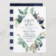 Esta moderna ahoy náutica é um convite de chá de fraldas de menino é perfeito para um chá de fraldas de praia. A design botânica apresenta lindas folhas verdes com sotaques de marinho e estrelas-do-mar douradas, dando-lhe uma vibração da praia.