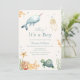 Ahoy É um menino! comemore o próximo chá de fraldas com nosso simples minimalista debaixo da aquarela baleia-branca, tartaruga, água-viva, estrela, coral e bolha em cor bege. Você pode personalizar seu próprio texto e cor através de "personalizar este design".