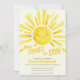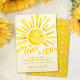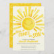Uma bela e brilhante arte solar alegre e sorridente aqui vem o filho bebê a fazer convites. Outros itens de chá de fraldas correspondentes neste design também estão disponíveis ou podem ser criados por solicitação. Personalize com seus próprios detalhes de chá de fraldas. © Arte de tinta pintada à mão única e projetada por Sarah Trett exclusivamente para www.mylittleeden.com apenas no Zazzle.