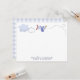 This adorable nursery note card features a playful airplane flying through soft clouds with a dotted flight path, creating a sweet aviation themed design. The charming illustration adds a fun and whimsical touch perfect for a baby boy’s nursery. The coordinating blue gingham pattern on the back adds a classic and timeless detail. Ideal for baby thank you notes, nursery correspondence, or personalized baby stationery.