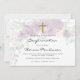 Este belo design de Confirmação apresenta um buquê floral roxo e roxo e folhas verdes de fundo, com uma cruz dourada no centro da design. Personalize com o nome do seu filho em um roteiro bonito e inclua detalhes importantes de ocasião.