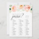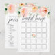 O cartão de jogo de chá de panela chic corresponde à nossa coleção de chás de panela Airy Floral e apresenta uma borda floral de cor d'água em tons pastel de pêssego, cor-de-rosa e verde primavera. Cartão duplo permite que você ganhe dois jogos em um só! A frente apresenta o Bingo Bridal, com o que está na sua bolsa. Personalize com a noiva para ser o nome e a data do chá.