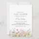 Primavera com convites para chuveiros de bebês com uma ilustração floral de cor d'água em tons suaves de rosa, roxo e laranja. O nome da futura mãe está em uma letra manuscrita. O verso é rosa claro.