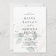 Este convite de casamento desvanecido de folha de ouro e verduras é perfeito para um casamento moderno. O elegante design botânico apresenta uma aquarela clara e arejada, eucalipto, acentuado com folhas de brilho de ouro branco.