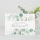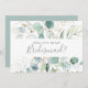 Esta carta de proposta de uma donzela de folha de verduras e folhas é perfeita para um casamento moderno. O elegante design botânico apresenta uma aquarela clara e arejada, eucalipto, acentuado com folhas de brilho de ouro branco. Personalize a placa com o nome da noiva e da dama de honra. Personalize a parte traseira do cartão com uma mensagem personalizada.