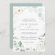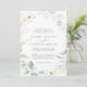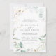 Este convite para casamento formal de folha de ouro e verduras é perfeito para um casamento moderno. O elegante design botânico apresenta uma aquarela clara e arejada, eucalipto, acentuado com folhas de brilho de ouro branco.