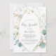Este belo verde e o convite à aspersão de bebês de folha dourada é perfeito para um chá de fraldas moderno. O elegante design botânico apresenta uma aquarela clara e arejada, eucalipto, acentuado com folhas de brilho de ouro branco.