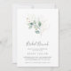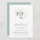Este vencedor venenoso de folha de ouro e verde-doce é perfeito para um chá de casamento moderno. O elegante design botânico apresenta uma aquarela clara e arejada, eucalipto, acentuado com folhas de brilho de ouro branco.
