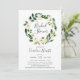Os convites de chá de panela florais elegantes apresentam uma coroa de rosas brancas de cor aquosa e peônias com folhas e folhagem botânica verde-luxuosa, rodeando o "chá de panela" em letra chica manuscrita. Personalize com os detalhes do seu chá de panela abaixo.