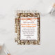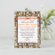 O arco da guita é apenas um design impresso. A cor da pia batismal do nome dos noivos é igualmente laranja. A parte traseira tem o mesmo fundo do latido de árvore do camo e os nomes dos noivos em uma listra transparente. Estes convites do casamento do camo do país são perfeitos para qualquer um que ama o país, caça, camuflagem, ou está tendo um casamento exterior do país. Apenas adicione seu próprio convite do casamento que exprime a este modelo do convite do casamento do camo.