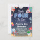 Convite de Quarto Aniversário no Espaço Exterior Primeira Viagem ao Sol Convite de Partida para o 4º Aniversário do Planeta da Galáxia do Menino Astronauta