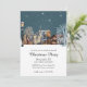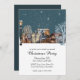 Este feriado personalizado ou convite de festas de Natal apresenta uma ilustração aconchegante do estilo aquarela. Uma imagem de uma pequena vila de inverno à noite é impressa na parte central. Um poste luminoso é fotografado à esquerda, e a queda de neve suavemente cobrir as casas na cidade.