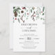 Convites de casamento bonito, elegantes e modernos para sua ocasião especial! Perfeito para a feliz e alegre época de Natal de inverno! A coloração d'água, a borda da folhagem verde-clara com eucalipto, cone de pinheiro-marrom, amoras-negras vermelhas e belas formigas-de-cervo marrom encaixa os detalhes da celebração do casamento. Seus nomes são apresentados em fontes modernas no topo, e reverso da carta para revelar um padrão de neve verde sábio no verso. Personalize seus detalhes de casamento, data, local e muito mais na frente.