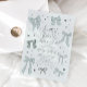 Placa de chá de panela do tema azul coquete com ilustração de fitas e corações. O texto diz "Algo azul antes de mim."