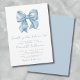 Algo Azul Antes De Eu Fazer! Chá de panela azul Elegante. Este charmoso design apresenta um delicado arco azul de aquarela no topo, aliado com a frase "Algo azul antes de eu fazer!" em uma sofisticada mistura de fontes azuis e cinzas. O texto combina serifa clássica e caligrafia elegante de script, criando um olhar eterno, mas moderno, que é perfeito para celebrar a noiva-a-ser. Ideal para chás de panela ou encontros de chic, o convite é totalmente personalizável, permitindo que você ajuste cores de fonte e layouts para corresponder ao estilo do evento. A parte traseira apresenta um fundo azul macio, amarrando o design com um acabamento fresco e na moda. Perfeito para comemorações de primavera e verão, este convite versátil funciona lindamente durante todo o ano e é ideal para qualquer tema de chá de panela, desde festas de jardim a eventos confortáveis em ambientes fechados. Disponível como cartão impresso ou arquivo digital para download para e-mail ou impressão local, este design adiciona um toque de elegância refinada à sua celebração.