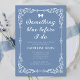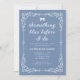 Para a futura noiva que está jogando uma festa de chá da tarde no estilo do tema do chá de panela adorável de algo azul antes de mim. Este chá de panela está em um azul em pó e apresenta um ornamentado, uma estrutura de borda do estilo vintage e um arco elegante. Este chá de panela é elegante e clássico e é para a futura noiva que quer ter um evento elegante, tranquilo e mais íntimo de chá de panela. Este chá de panela apresenta um exemplo de texto para mostrar como o seu chá de panela poderia ser. É facilmente personalizado para incluir os detalhes do evento do seu chá de panela. Há 3 caixas de texto nas quais você pode editar o texto para incluir seu nome e detalhes do evento. O texto que começa por "Junte-se a nós..." pode ser mantido como está ou editado para ser conveniente. Para a futura noiva que está jogando algo azul antes que eu faça chá de panela. Para qualquer solicitação personalizada ou personalizada, entre em contato conosco via Zazzle.