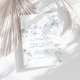 O convite apresenta uma caligrafia elegante com um tema de jardim de flores azuis.
