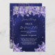 Um fundo azul marinho, a cor azul é irregular. Decorados com bordas de lavanda e poeira brilhante colorida. Personalize e adicione um nome e detalhes da parte. Texto: Algo azul antes que eu faça.